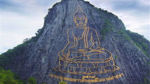 【七珍佛山】七珍金佛山是泰国华侨送给泰皇的,那时东南亚排华现象非常严重,泰国华侨怕被波及到这股潮流,出于安定的考虑,出资买下了这座山(龙脉),在山上用黄金镶嵌了一座巨大的金佛,还在金佛的胸口藏了七颗价值连城的各色宝石,意寓:这座龙脉是非常珍贵的,金佛更珍贵,再加上无价之宝的宝石,都献给泰皇,表达广大华侨对泰皇的忠心。