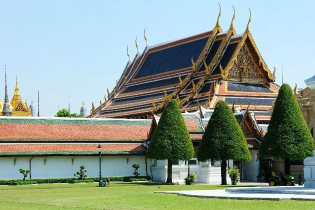 【拉玛王朝大皇宮】(约1小时):游览童话宫殿般、世界公认的最美丽的王宮——【拉玛王朝大皇宮】及泰国镇国之宝——玉佛及供奉此佛且是全泰国唯一没有和尚居住的寺庙——【玉佛寺】(约45分钟)。(★温馨提示:泰国大皇宫对服装方面要求较严格,不能穿无袖上衣、短裤、拖鞋,女性游客须穿过膝长裙,男性游客须穿长裤,否则无法进入参观。)